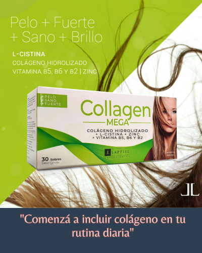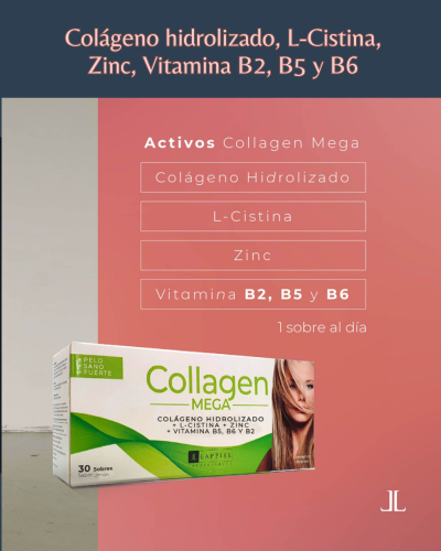 Collagen Mega Colágeno Hidrolizado | L-Cistina Vitaminas B5 y B6 | Zinc